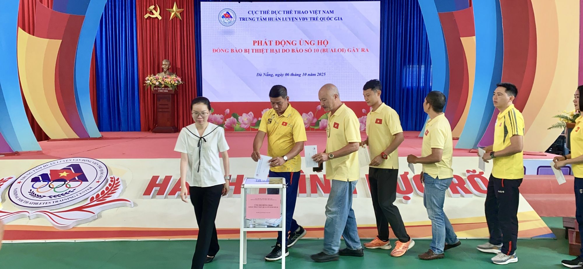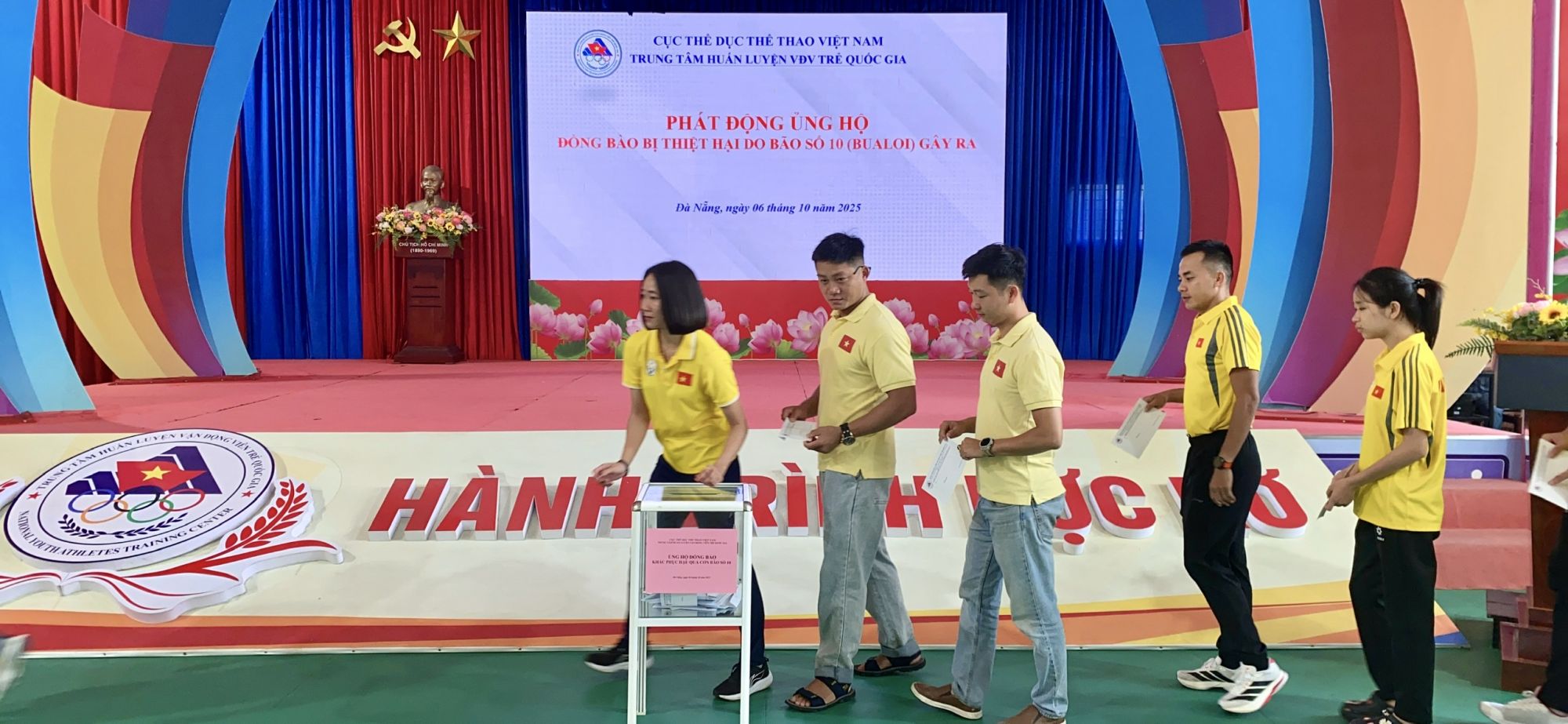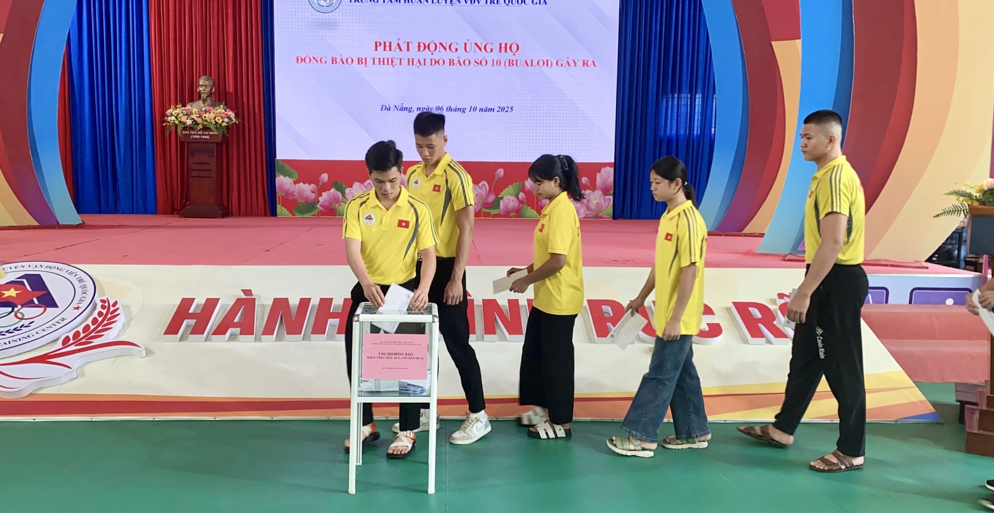 Hưởng ứng Lời kêu gọi của Đoàn Chủ tịch Ủy ban Trung ương MTTQ Việt Nam về việc Vận động ủng hộ đồng bào khắc phục thiệt hại do cơn bão Số 10 gây ra. Sáng ngày 06/10/2025 sau khi tổ chức Lễ chào cờ đầu tuần, Trung tâm HL VĐV trẻ quốc gia đã triển khai cuộc vận động quyên góp, kêu gọi CBVC, NLĐ, HLV và VĐV toàn Trung tâm ủng hộ 01 ngày lương, ngày công để ủng hộ đồng bào bị thiệt hại trong cơn bão Số 10 vừa qua.