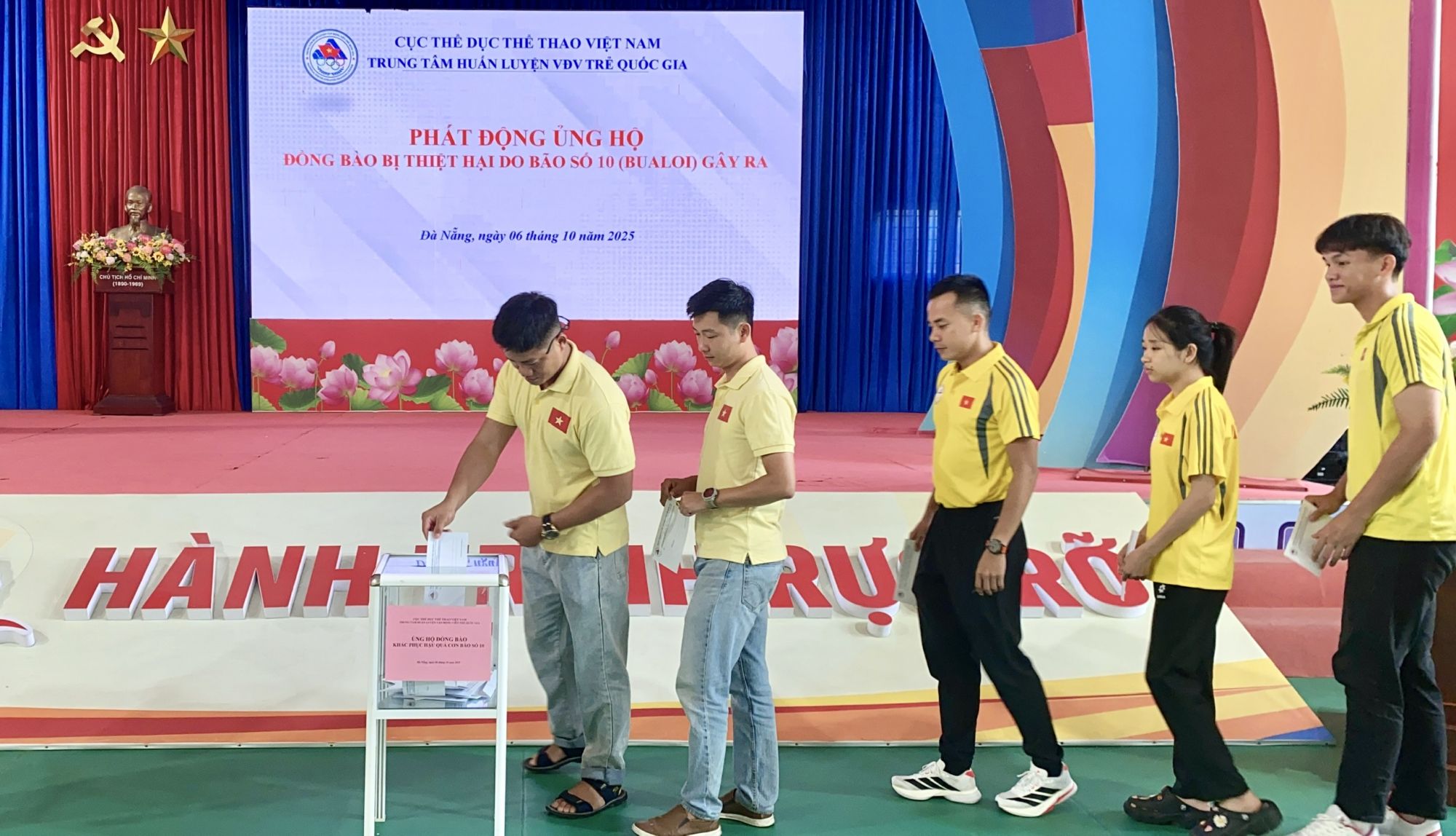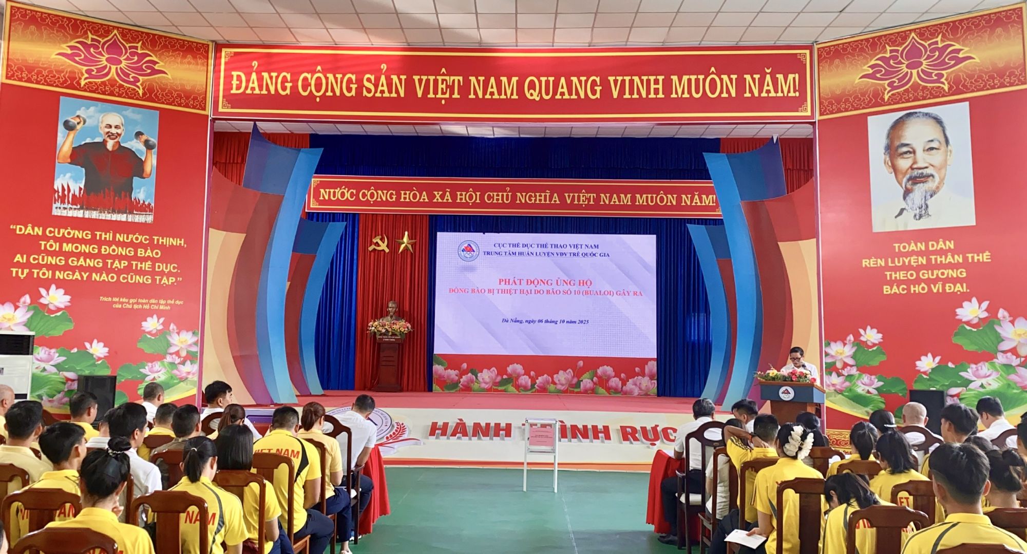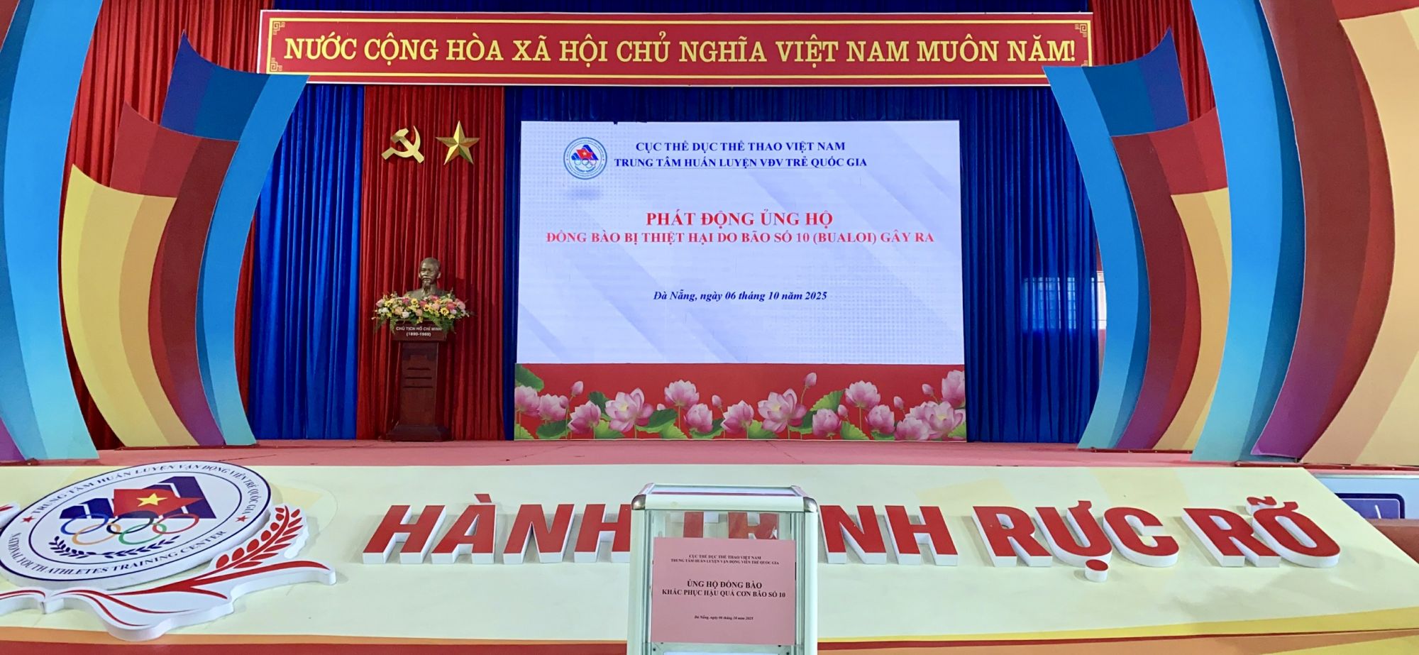 Hưởng ứng Lời kêu gọi của Đoàn Chủ tịch Ủy ban Trung ương MTTQ Việt Nam về việc Vận động ủng hộ đồng bào khắc phục thiệt hại do cơn bão Số 10 gây ra. Sáng ngày 06/10/2025 sau khi tổ chức Lễ chào cờ đầu tuần, Trung tâm HL VĐV trẻ quốc gia đã triển khai cuộc vận động quyên góp, kêu gọi CBVC, NLĐ, HLV và VĐV toàn Trung tâm ủng hộ 01 ngày lương, ngày công để ủng hộ đồng bào bị thiệt hại trong cơn bão Số 10 vừa qua.