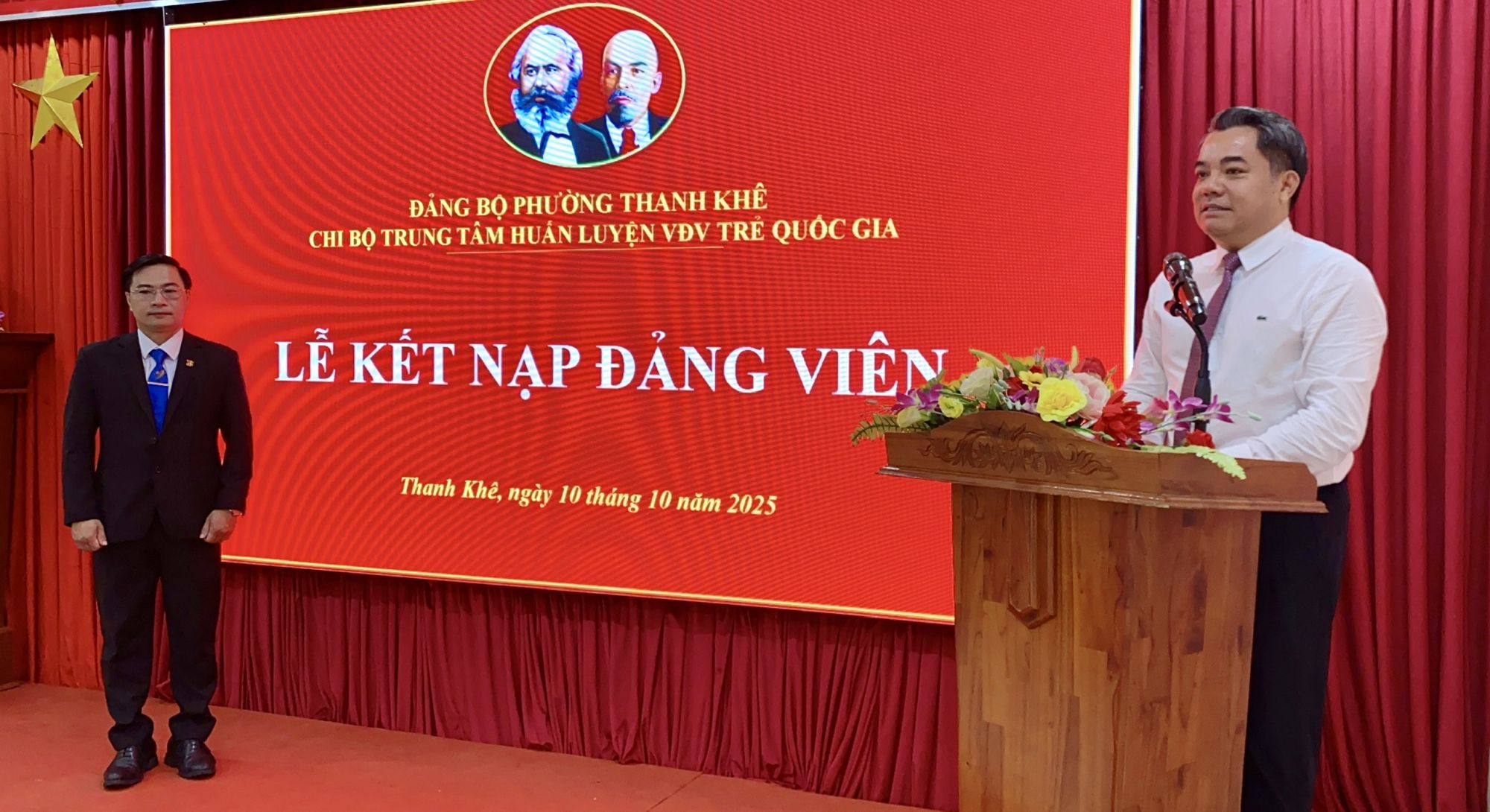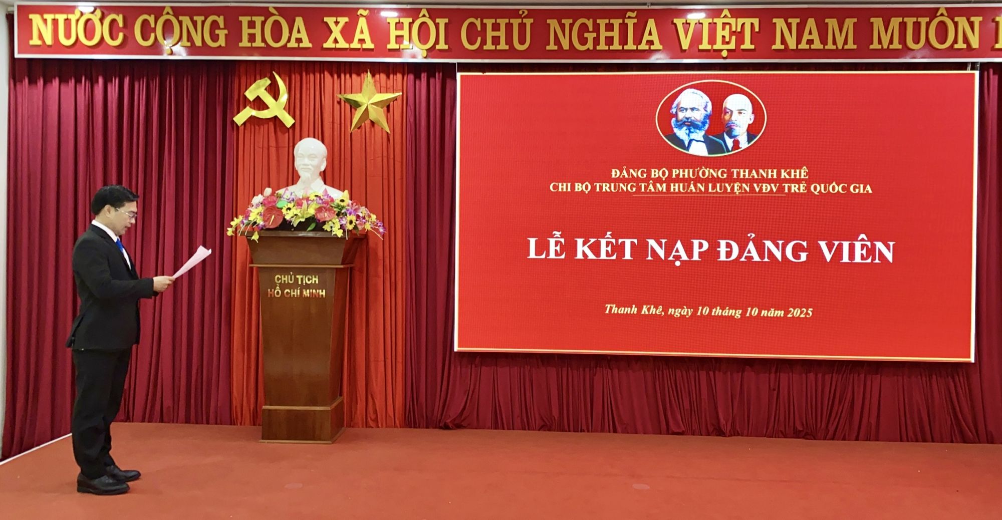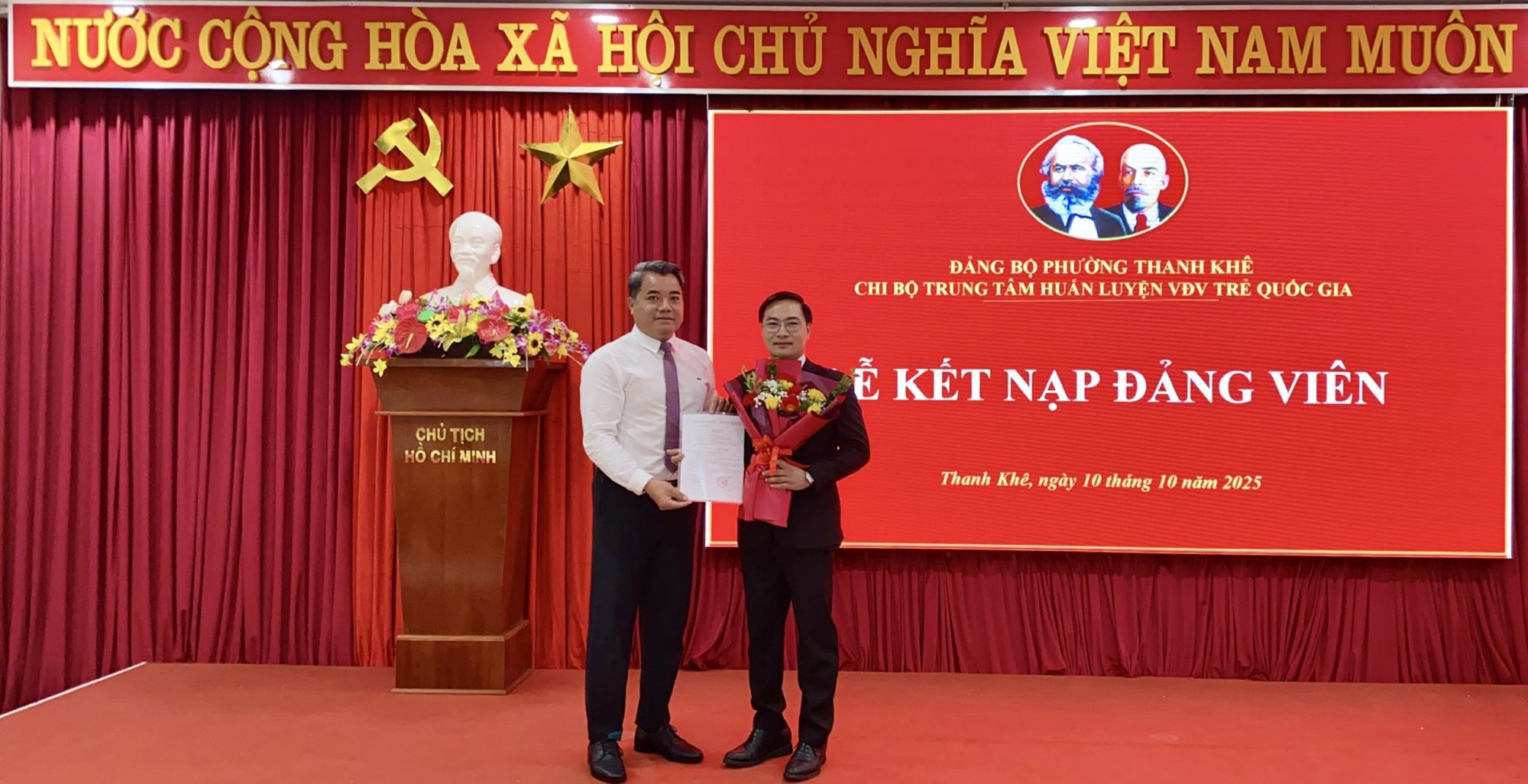 Căn cứ Điều 4, Điều lệ Đảng Cộng sản Việt Nam; Thực hiện Quyết định số: 493 - QĐ/ĐU ngày 29/09/2025 của Đảng ủy Phường Thanh Khê về việc kết nạp đảng viên. Được sự đồng ý của Ban Thường vụ Đảng ủy Phường Thanh Khê. Sáng ngày 10/10/2025, Chi bộ Trung tâm HL VĐV trẻ quốc gia đã tổ chức Lễ kết nạp đảng viên mới cho quần chúng Hoàng Anh Tuấn – HLV trưởng Đội tuyển Cử tạ trẻ quốc gia.